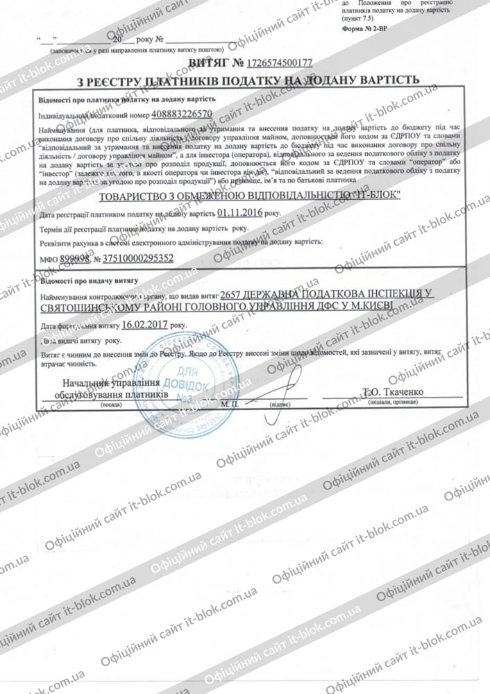ТОВ "ІТ-БЛОК". Код ЕГРПОУ 40888326. вул. Богдана Гаврилишина 11. Дата реєстрації: 10.10.2016
